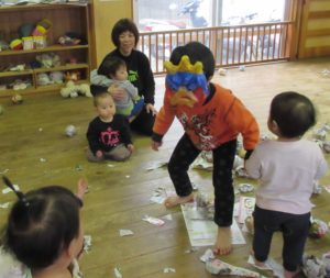 乳児棟ひよこ組にも鬼さんが来たよ。