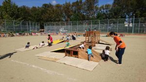 子どもたちは日頃保育園で身体を使って遊んできたことや、斜面のぼりやとびおり、鉄棒や跳び箱などなどの取り組んできたことなど、たくさんの声援を受けて存分に力を発揮していました。