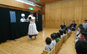 人形劇団『スマイル』の皆さんから、「レストラン夢の国」という演目を子どもたちに披露して頂きました。