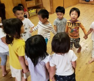 じゃんけんに親しみながら『花いちもんめ』や『ドンじゃんけん』などを楽しむ3歳児つばめ組。