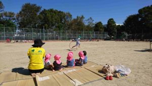 今日はグラウンドでリズム遊びをしました。