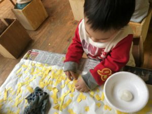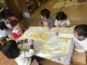 2歳児の子どもたちが楽しそうに何かを作っていました。