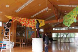 (ホール:かつての年長さんが作った鯉のぼり)