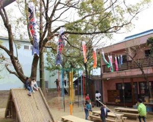 例年末次保育園では、4月中旬までに『鯉のぼり』を飾ります。
