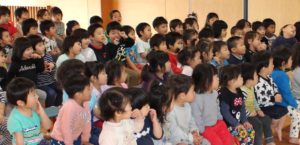 (食い入るように聞く子どもたち)