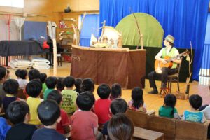 ギターの素敵な音色とやわらかくあたたかいセリフに合わせて動く人形劇に、みんな食い入るように見ていました。