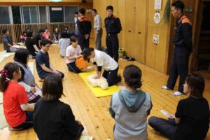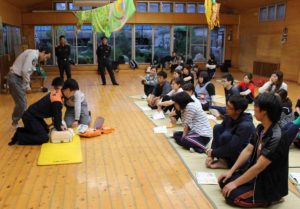 今年度も平野消防署の方々に講師として来ていただき、人工呼吸やAEDの実技などを教えて頂きました。