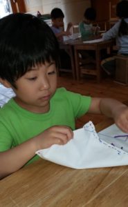 必死になって糸を通し、チクチクと「うえ・した・うえ・した」と一針一針縫っていきます。