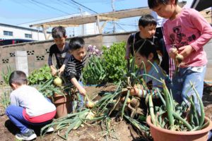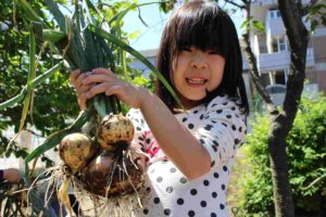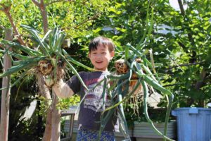 末次保育園農園の玉ねぎが収穫をむかえました。