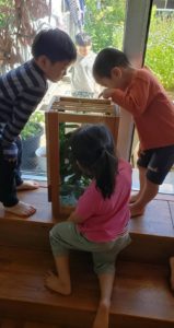 玉ねぎの収穫の後、幸運なことに『さくらんぼ』も収穫の時期をむかえていましたので、子どもたちは大人にとってもらって食べ放題!