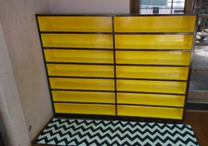 ボロボロだった学童の下駄箱を、指導員の先生が板を貼りペンキを塗って修繕をしてくれました。