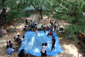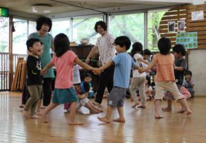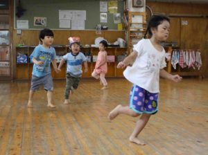 『逃げろ~!』と子どもたちはこの遊びが大好きです。