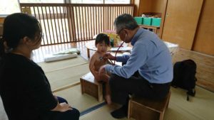 保育園の嘱託医である、東大阪生協病院小児科 春本常雄先生に来て頂いて0~1歳児の内科検診を行いました。