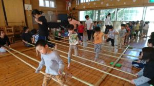 子どもと大人にわかれたり、時には一緒にしたりなどと、様々な『リズム遊び』を体験しました。