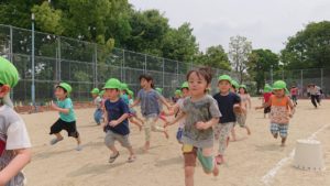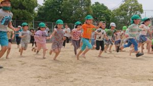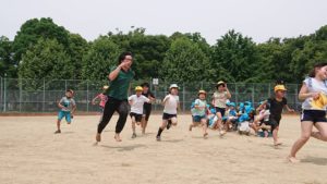 狭い園庭を飛び出し、グラウンドで思いっきり身体を動かして遊ぶ。