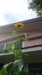 3月頃から、去年のひまわりのこぼれ種から芽を出し、ひっそりとひっそりと成長していました。