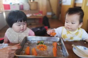 0歳児の部屋に「にんじん屋さん」が来たそうです。