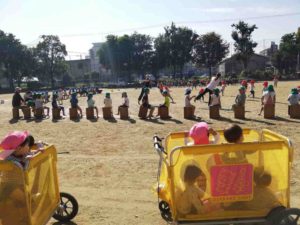 グラウンドで運動会の予行をしているお兄ちゃん・お姉ちゃんの様子を見に行ったり。