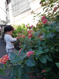 きれいなお花に興味示したり。