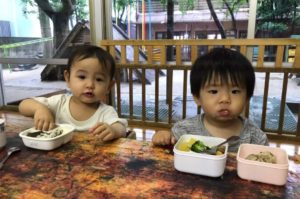 お弁当にも慣れ、口の中いっぱいにモグモグ。お腹がすいていたのか、あっという間に中身が空っぽになっていました。