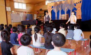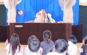 今日は「人形劇団クラルテ」さんが来てくれ、4~5歳児に人形劇を披露してくれました。