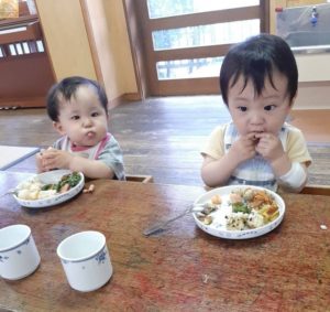 1歳児あひる組の子どもたちの様子です。
