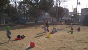 3~5歳児で久しぶりに『グラウンドで遊ぼう!』を行いました。