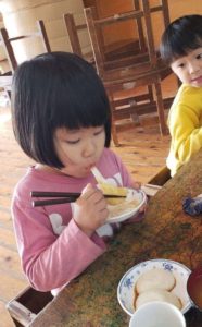 でもせっかくついたのに食べれないは残念…ということで、お台所の先生が『もち』を準備してくれました!