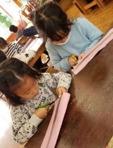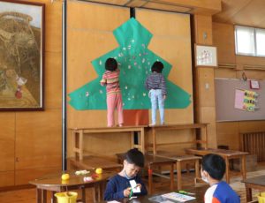 毎日毎日年長さんたちは、「クリスマスツリー」を自分たちで作るのを楽しんでいます。