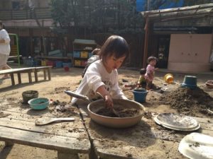 暖かくなると園庭遊びも活発になります。