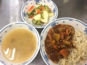 日頃子どもたちに人気な給食を提供します!!本日は、「ハヤシライスとりんごサラダ」