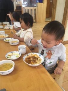 一生懸命におはしで掴もうと頑張る姿や、時には手をつかったり。