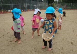 3~5歳児の子どもたちが、「走ってもいたくないように~」と言って拾ってくれていました。