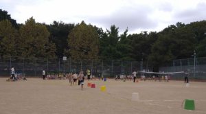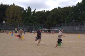 運動会で使用するグラウンドの整備を子どもたちにも手伝ってもらいました。
