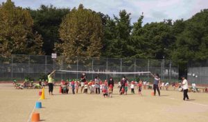 かけっこなどたくさん遊んだ後の『ころがしドッチボール』です。