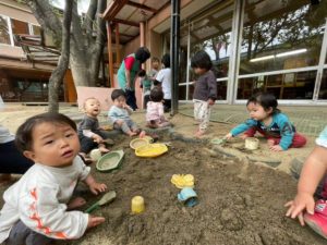 あっちこっちと、楽しい所に走り回る2歳児クラスのはと組さんです。