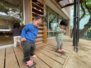 「誰のくつかな?」と履いてみたり、お兄ちゃんお姉ちゃんにあやしてもらったり、お部屋で『アスレチック』に挑戦したりと、『変化』にも慣れてきて、探索活動が広がってきました。