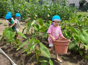 しっかりと運んでくれる3歳児の子どもたちです。