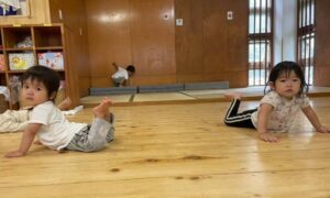 模倣をしてがんばる姿がとてもかわいいあひる組の子どもたちです。