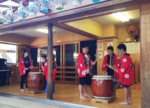 学童の子どもたちによる「オープニング太鼓」