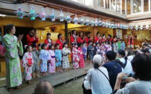 皆さんの前で久しぶりに披露する、年長・職員による『みんなで歌おう!』