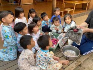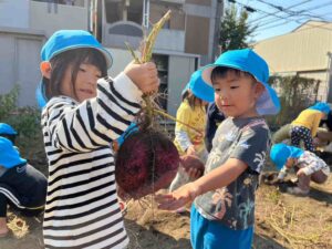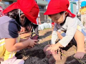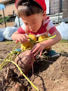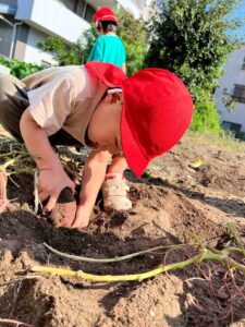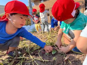 末次保育園農園へ2~5歳児が「芋ほり」に行ってきました。