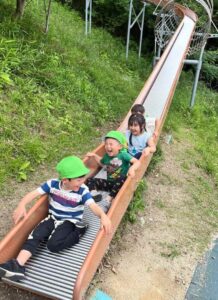 走って下り止まれない子どもたち。「だるまさんがころんだ…」をしながら楽しみながら進んでいきました。