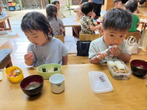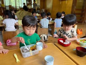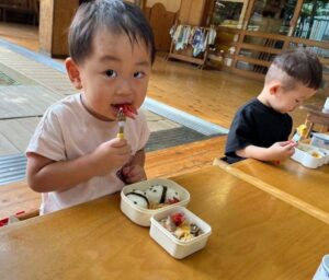 「みて~」「〇〇あるよ~」などと友だちやや先生たちにお弁当を見せてくれていました。