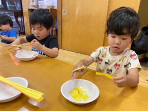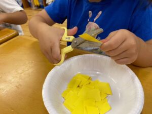 3歳児のハサミの活動の様子です。
