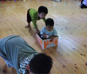お兄ちゃんたちが「やったるわ」と手伝ってくれます。
