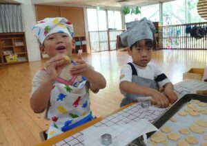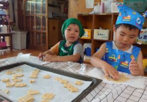 この日は午後の保育参観へむけて、お母さんたちと食べる「クッキー」を午前中に作りました。