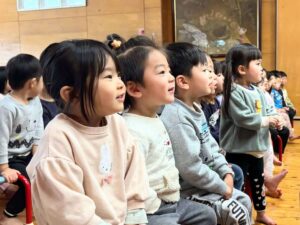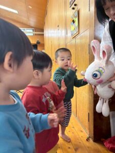 子どもたちへのプレゼントとして、人形劇団クラルテさんをお招きしての人形劇を開催しました。