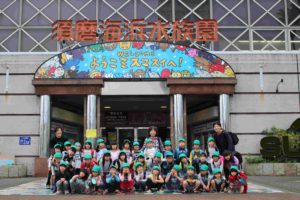信貴生駒縦走登山の予定でしたが、雨天のため須磨水族館へ海の生き物を見に行きました。様々な生き物に興味津々の子どもたち。保育園に帰ってからは、露天風呂や先生たちによる「わらしべ王子」のおはなし会などを楽しみました。
