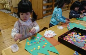 指先を上手に使いながら、思い思いの飾り方で集中して作っていく子どもたちです。